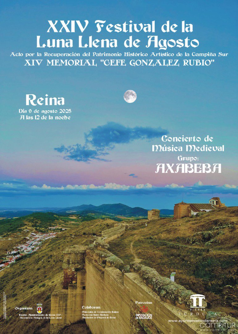 Esta iniciativa, en su edición número 24, busca tanto promover el patrimonio cultural y arquitectónico de la Campiña Sur como consolidar la integración de actividades lúdicas, artísticas y reivindicativas gracias a la colaboración de la Diputación de Badajoz, el Ayuntamiento de Reina y asociaciones locales como Amigos de La Luna Llena Agosto.